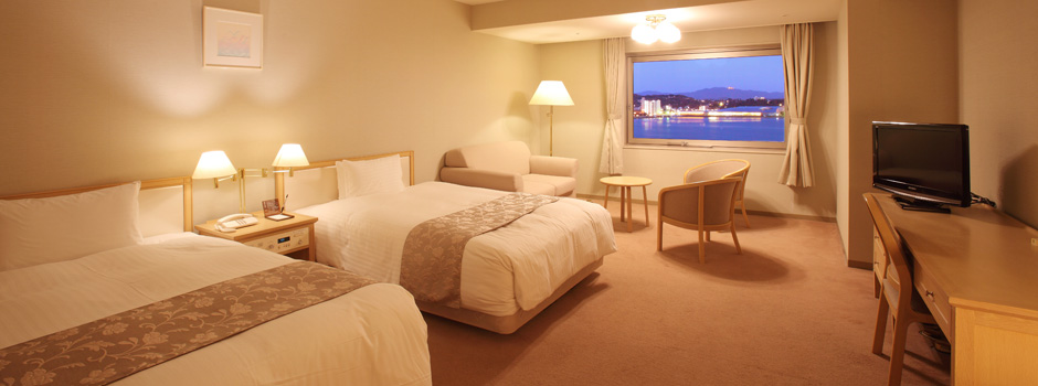 Water and greenery harmonize beautifully at Hotel Ichibata on Lake Shinji-ko’s shoreline. Located within Matsue City and overlooking Lake Shinji-ko, our hotel offers magnificent views from our Japanese-style rooms and scenic onsen bathhouse. Please enjoy the picturesque beauty of Lake Shinji-ko, as Yomegashima Island floats upon its surface and it is framed by the ridges of Chugoku’s mountains, including the beautiful Mount Daisen.