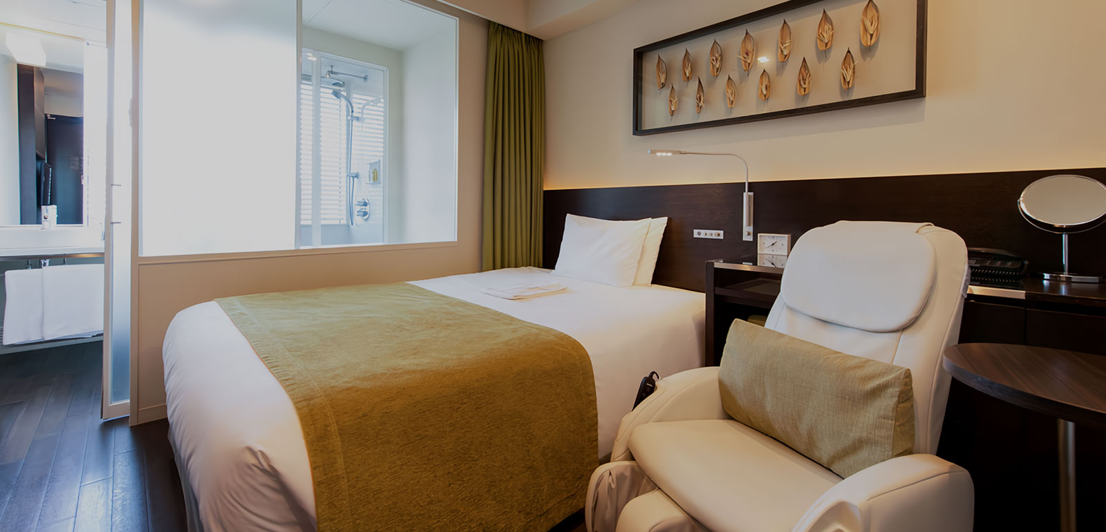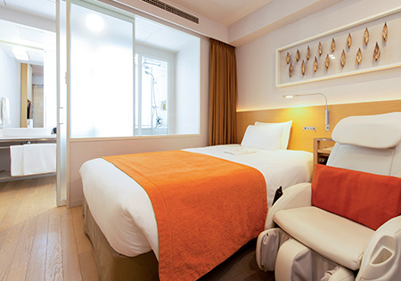 The highly relaxing rain shower, massage chair, and original ultra-densely bed will support your sleep and rest.