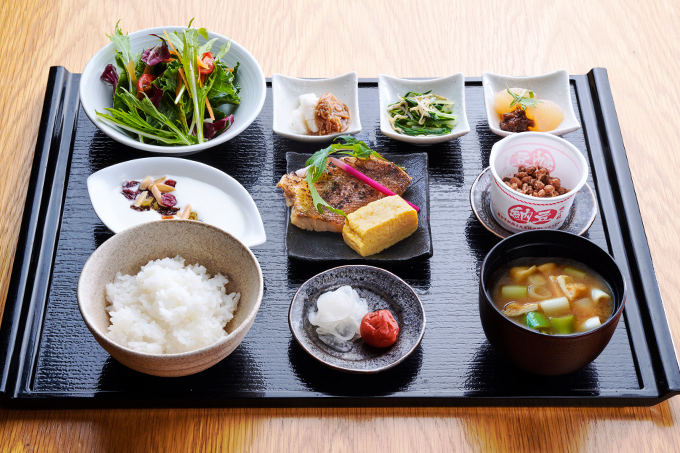부드럽게 지은 밥과 된장국과 함께 계절 반찬이나 생선을 드실 수 있습니다. 샐러드에는 야채를 더 맛있게 만들어주는 자가제 드레싱, 자사 농장 야채를 사용한 절임 등 작은 것 하나하나에도 신경을 쓴 국과 반찬 정식입니다.