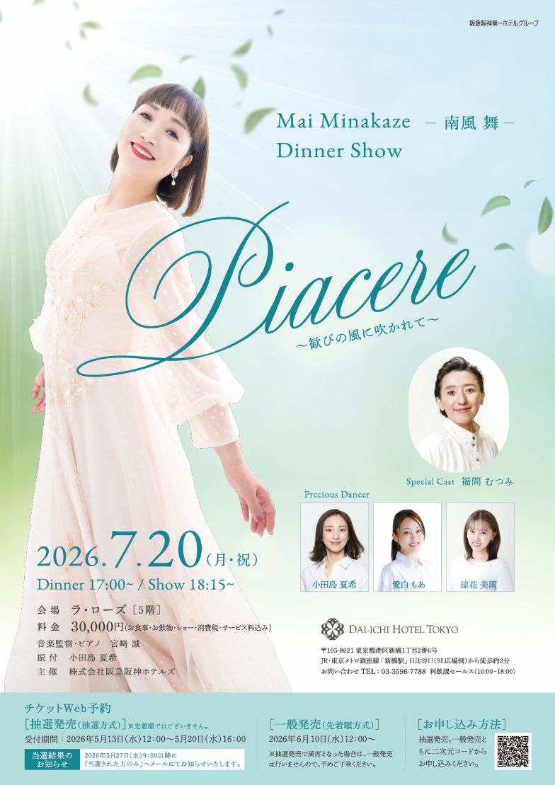 南風 舞 ディナーショー「Piacere~歓びの風に吹かれて~」開催決定!