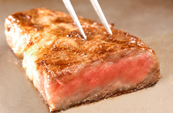 会場内のホットワゴンにてシェフが魚料理と肉料理を目の前で調理をし、
