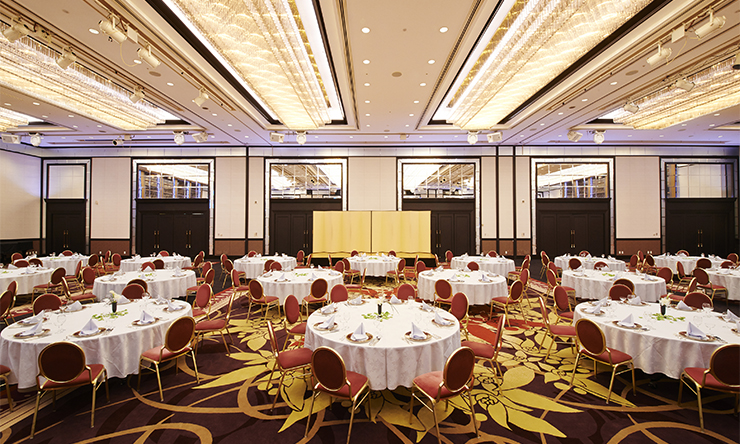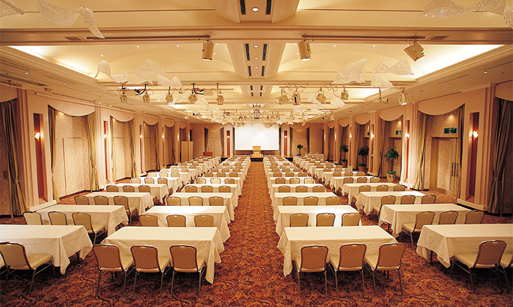 ホテルを代表する華やぎにあふれたグランドバンケットホールです。 会場を3つに分割することも可能です。国際会議、レセプション、 展示会など、幅広くご利用いただけます。