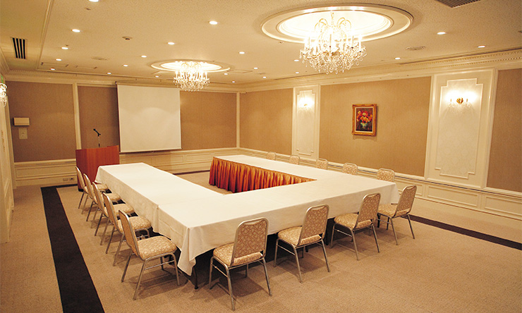 優雅な雰囲気を醸しだすベルサイユ調の小宴会場。お控室や小人数での会議、食事会などにご利用ください。