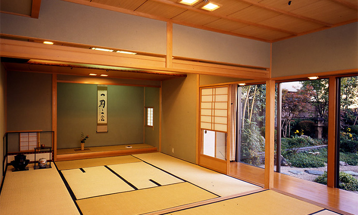 庭園を望む本格的なお茶室。ご結納に最適な落ち着いた空間。