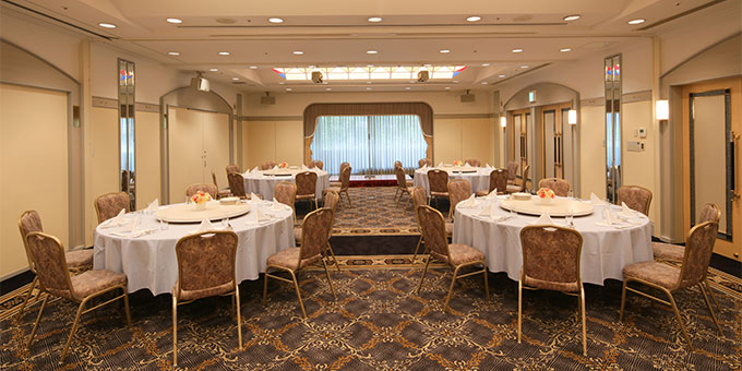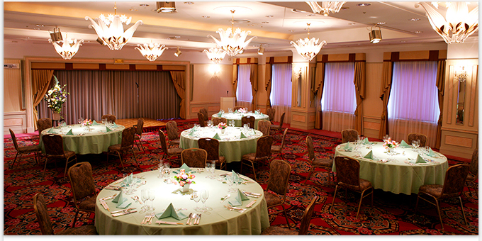 落ち着いた雰囲気の中、会議や展示会、お祝いの食事会、カジュアルな同窓会などのパーティまで、ご用途に合わせ多彩に演出いたします。