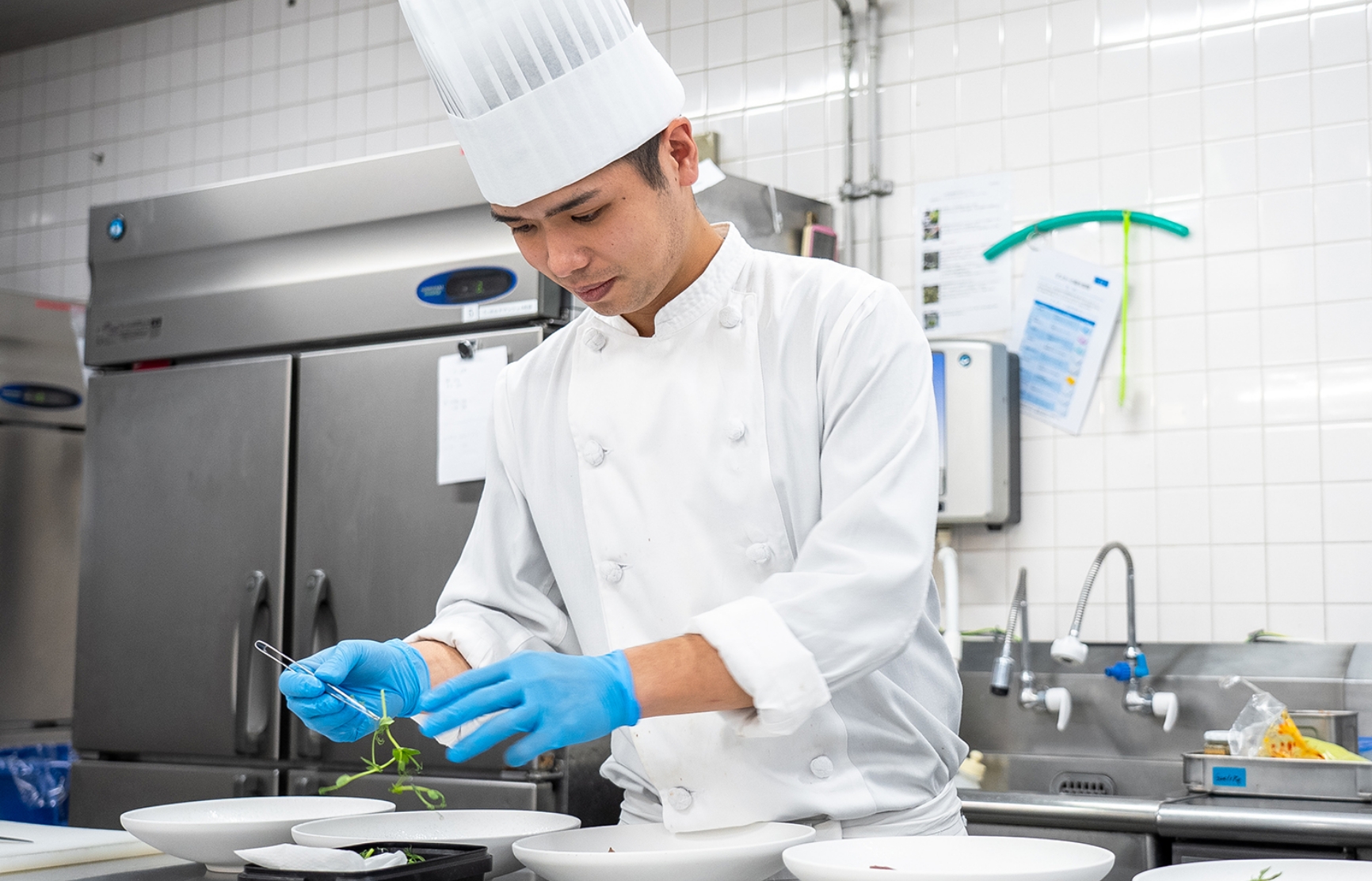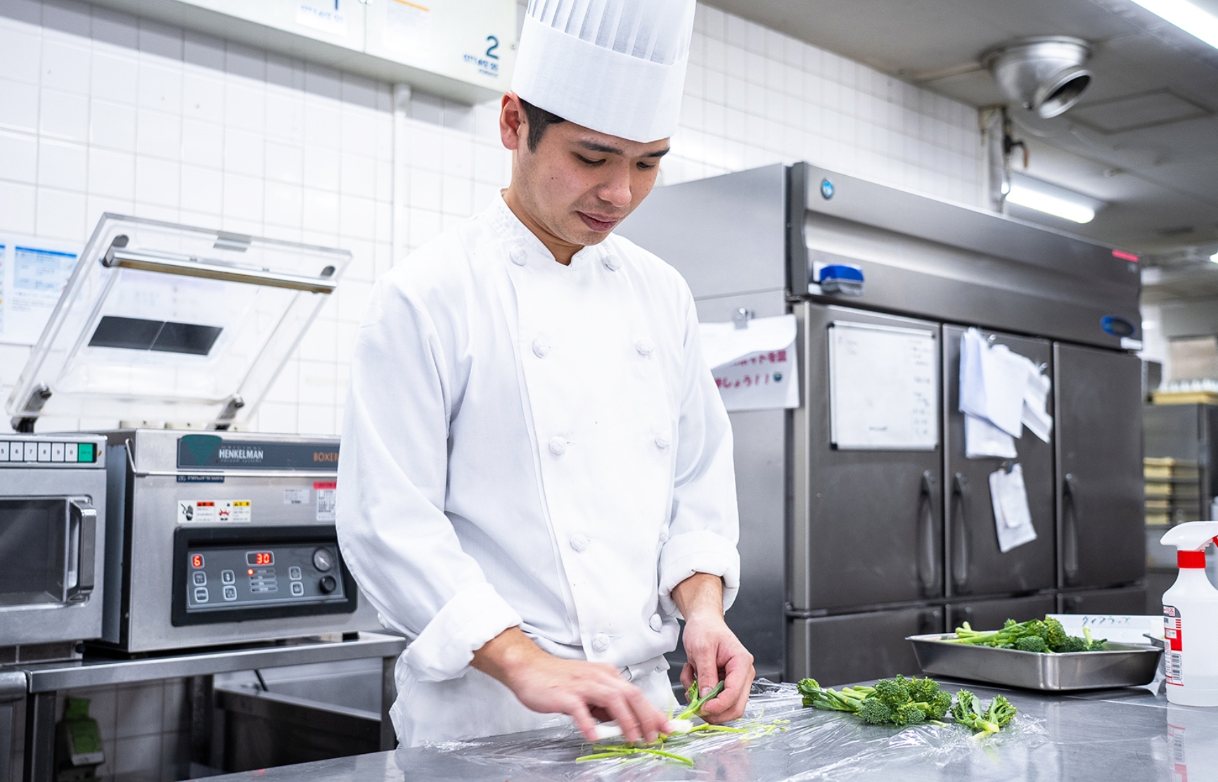 「福利厚生が整っているから」という理由で入社を決めましたが、入社1年目はコロナ禍による営業休止という思わぬスタートに。出勤日が限られるなか、宴会のヘルプや従業員食堂での調理を経験しました。思い描いた1年目とは異なりましたが、他部署のヘルプに入るなかで「ホテルのチーム力」を肌で感じた大切な準備期間となりました。