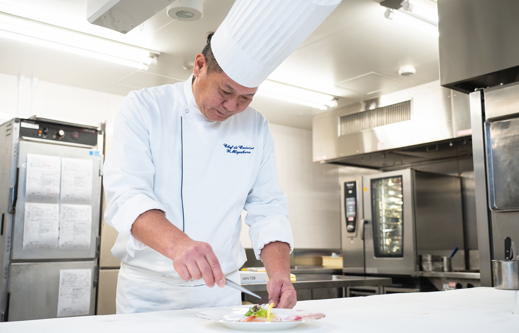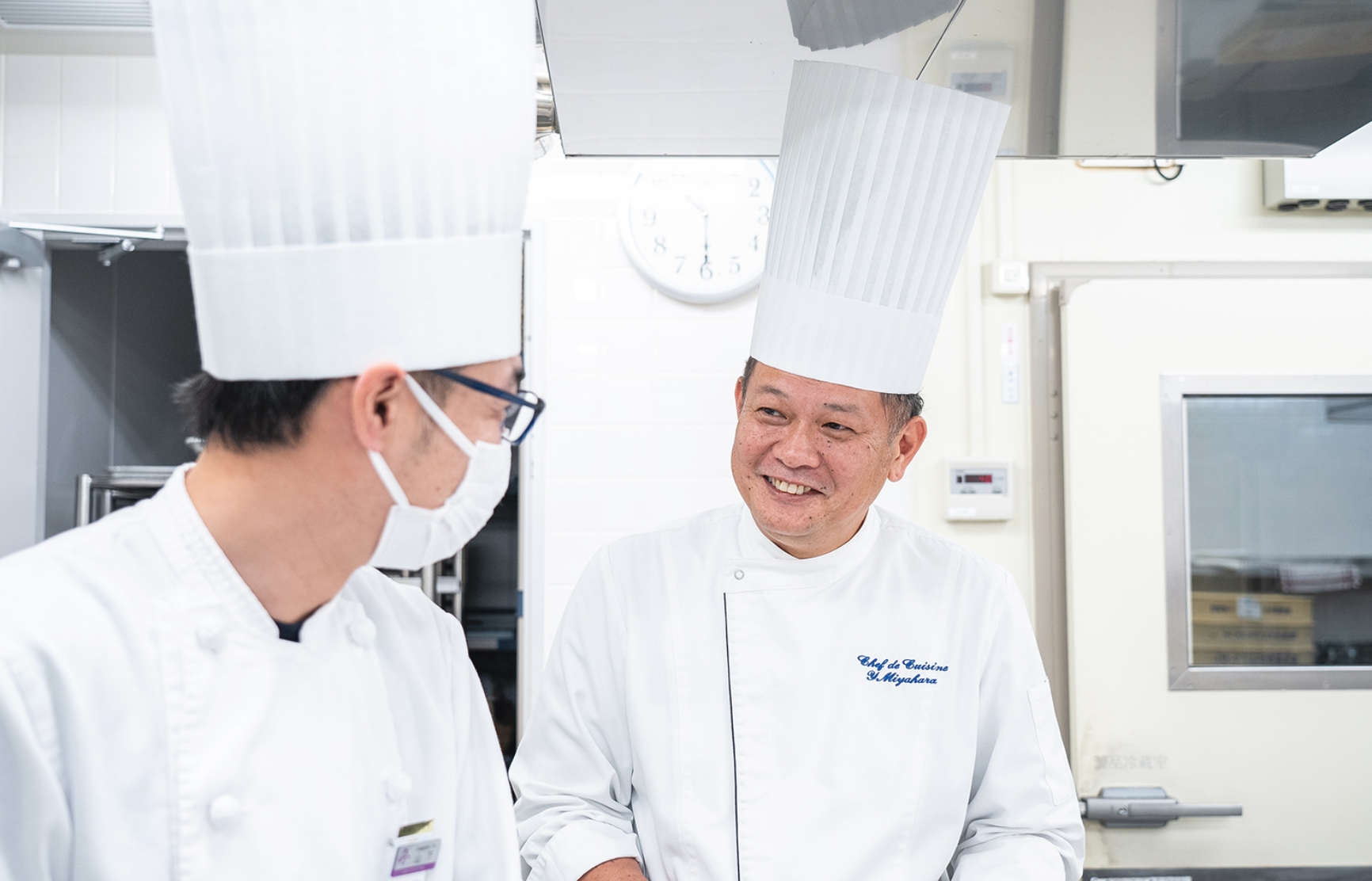 スイスから帰国した後、宝塚ホテルの副調理長を経て、2025年4月より調理長に就任。今まで以上に責任もある立場ですが、まずは働いている社員一人ひとりが楽しく働ける環境づくりと、後進の育成に努めています。