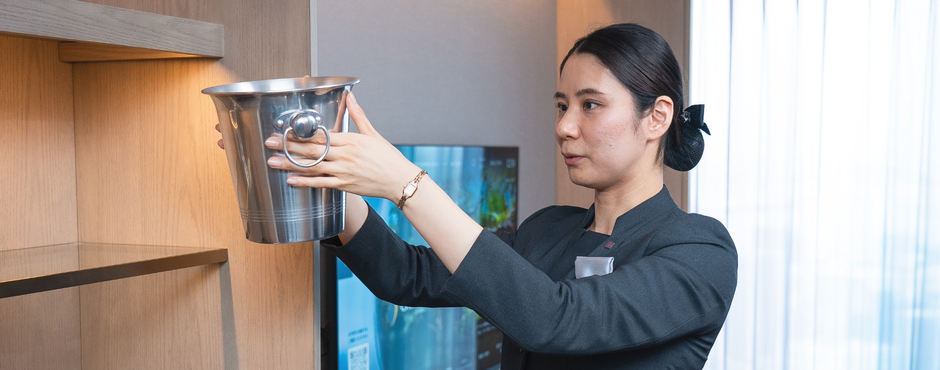 私のキャリアの大部分は「ホテルの開業準備」と共にあります。たとえば最新の「グランレスパイア」では、既存ブランド「ホテル阪急レスパイア大阪」との違いをどう出すかが課題でした。「ひとつ上の安らぎ」を実現すべく、全室へのコーヒーマシン導入からクラブラウンジの設置をはじめ、備品の一つひとつも自分たちで選定しました。予算や納期の壁にぶつかりながらも、既存のルールにとらわれず「これならグランと呼べる」というホテルを実現。特に、今回新しくできた試みは、「客室の食器設置」。引き出しの仕切りサイズまで綿密に計算し、こだわりを詰め込みました。