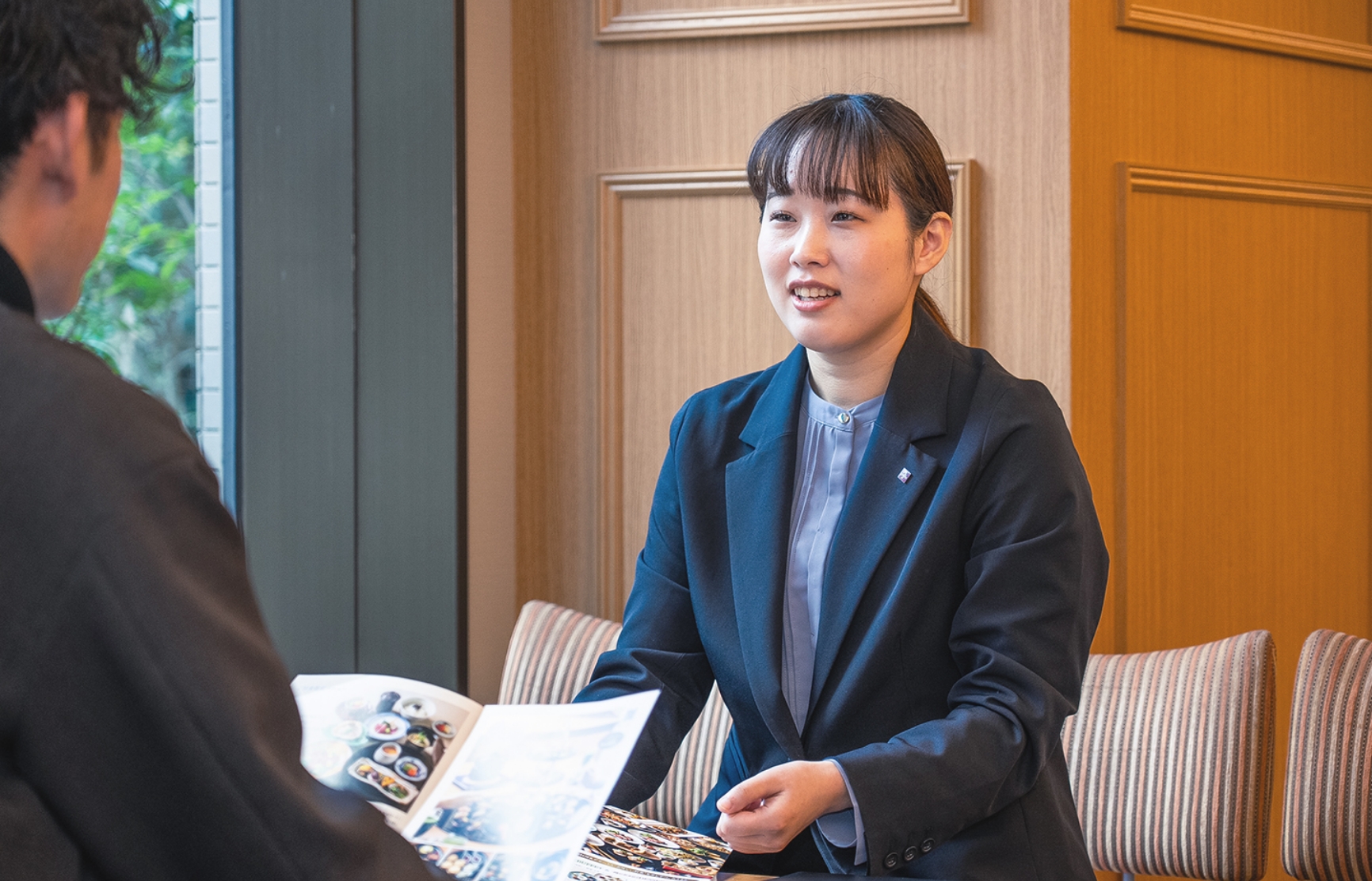 学生時代、関西で一番忙しいと言われる飲食店でアルバイトをしており、その経験から「自分には接客業が向いている」と感じていました。就活では食に関わる企業を受けていましたが、大学教授のアドバイスもあり、ホテルも検討することに。宿泊やレストラン、宴会など幅広い選択肢があるホテルという環境は、非常に魅力的に感じました。また、年齢の近い先輩がついて指導してくれる制度の話を聞き、安心して働ける点も入社の決め手でした。また、自分の新たな可能性にも出会えるこの場所で働きたいと思い、入社を決めました。