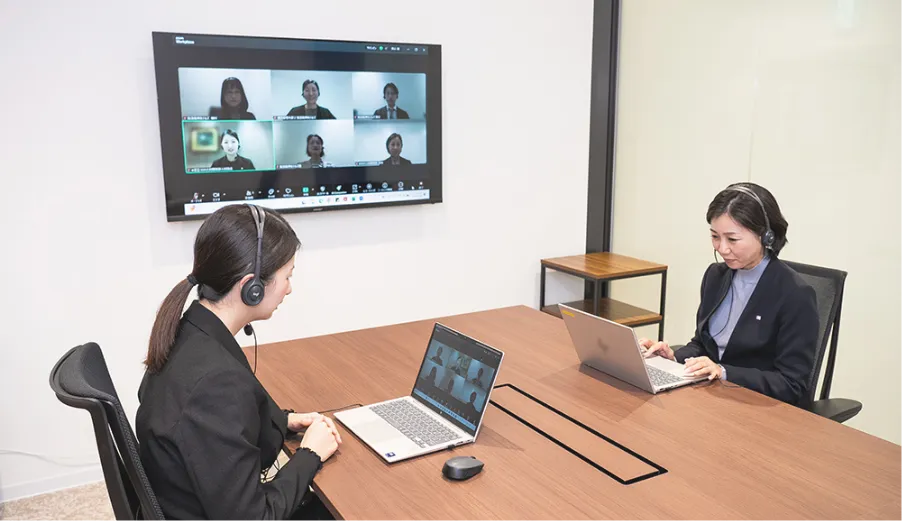 勤務時間中にオンラインで受講可能な英会話研修があります。接客シーンに特化した「ホテル英語」を学び、実践力を高めます。
