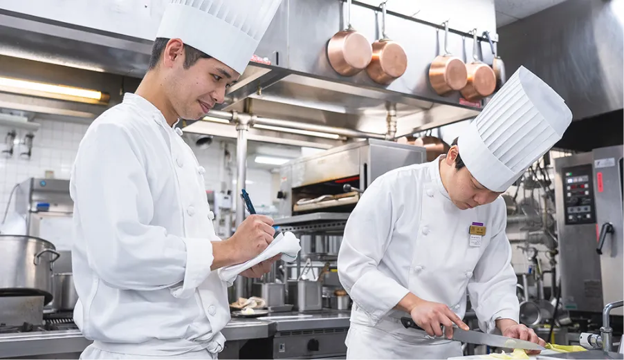 勤務時間外にホテルの厨房や食材を使用し、自身の技術研鑽に取り組める制度です。調理職の社員が利用可能です。