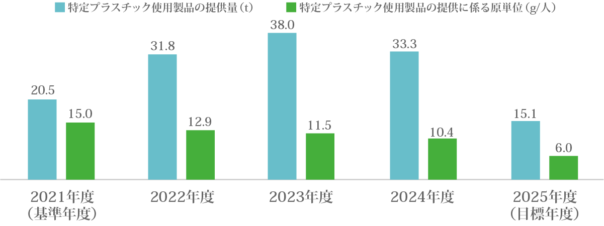 特定プラスチック使用製品の 提供に係る原単位 (g/人) |