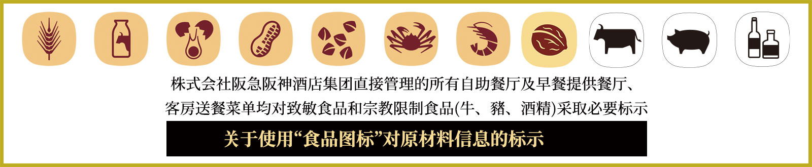 株式会社阪急阪神酒店集团直接管理的所有酒店自助餐厅及早餐提供餐厅、客房送餐菜单均使用“食品图标(表情)”,标示8种致敏原材料及猪肉、牛肉、酒精饮料等共11种宗教限制的禁忌食品原料相关信息。