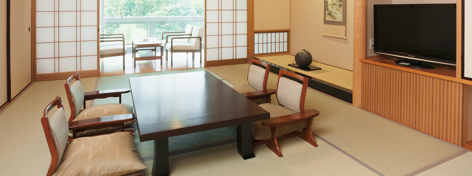 Arima View Hotel renovated Taiko-no-Yu and premium bedrock bath, Taiko-Yume-Juraku, as a historical Kur-theme-park in Feb. 2014, which are all free during your stay. We promise to give you peaceful time providing elaborate floor display with a motif of Waka (Japanese poem) and Kirie (Japanese-style collage), in-season dishes, and well-known hot spring that relates to Taiko.