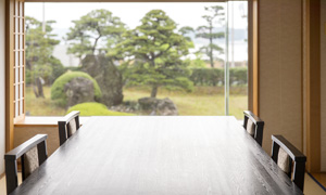 在一畑酒店的餐厅中,客人可以品尝岛根和牛、生长在宍道湖的蚬,以及其他当季食材。