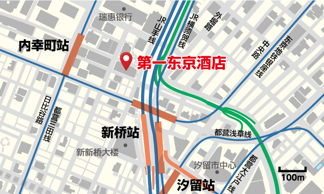 | 乘火车 | JR 从JR东京车站搭承 JR山手线到新桥站(两站), Subway 从日比谷出口出站,步行约2分钟即可到达本酒店。地铁搭乘东京地铁银座线到新桥站, 从D出口出站,步行约3分钟就能到达本酒店。搭乘都营三田线到内幸町站, 从A2出口出站,步行约3分钟就能到达本酒店到都营大江户线的汐留车站,步行约10分钟就能到达本酒店 私铁 搭乘百合海鸥到新桥站,步行约5分钟就能到达本酒店 |