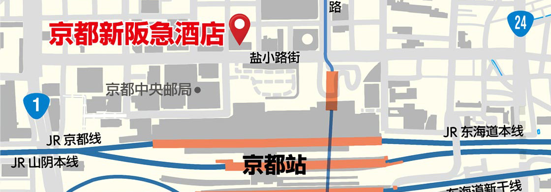 | 乘火车 | JR 从 JR 京都车站的乌丸中央出口,步行约3分钟可到达本酒店。 |