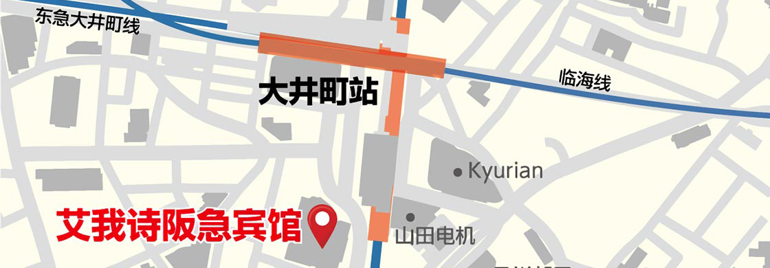 | 乘火车 | JR 自 JR京滨东北线的大井町站中央口(Atre 百货侧)约1分钟的步行距离。 私铁 本酒店自东急大井町线的大井町站约2分钟的步行路程。 Private railway The hotel is located 2 minutes on foot from Oimachi Station on the Tokyu Oimachi Line. |