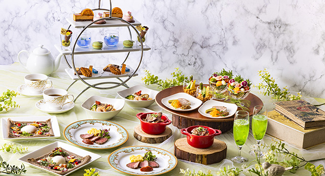 餐厅面对种植四季花卉与翠绿草地的庭园。