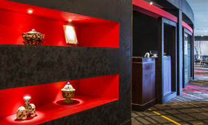 您就可以到达以红、黑、金为主色调的沉静店内。
