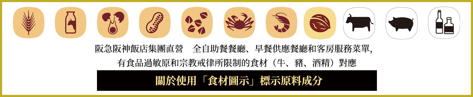 在株式會社阪急阪神飯店集團直營飯店的全自助餐餐廳、早餐供應餐廳以及客房服務菜單上,皆使用「食材圖示(圖畫文字)」來標示8項食品過敏原,以及根據宗教戒律所限制的禁忌食材,如豬肉、牛肉和酒精等11種原料成分。
