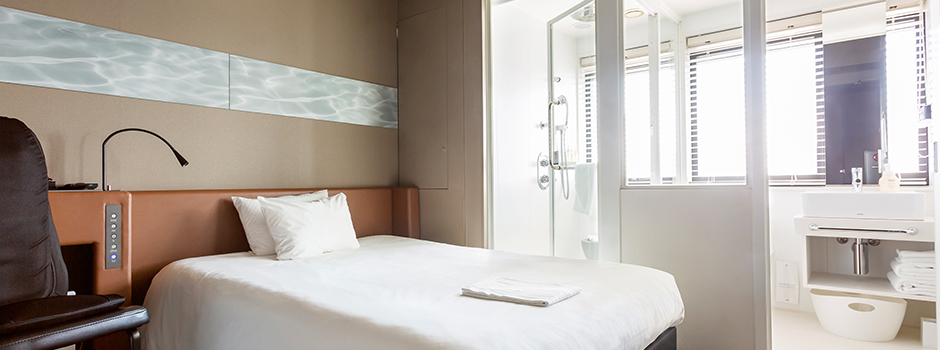 Compact yet cozy guests rooms, which are designed for the high quality of sleep, are featured with rain shower, massage seat, and our brand mattress.