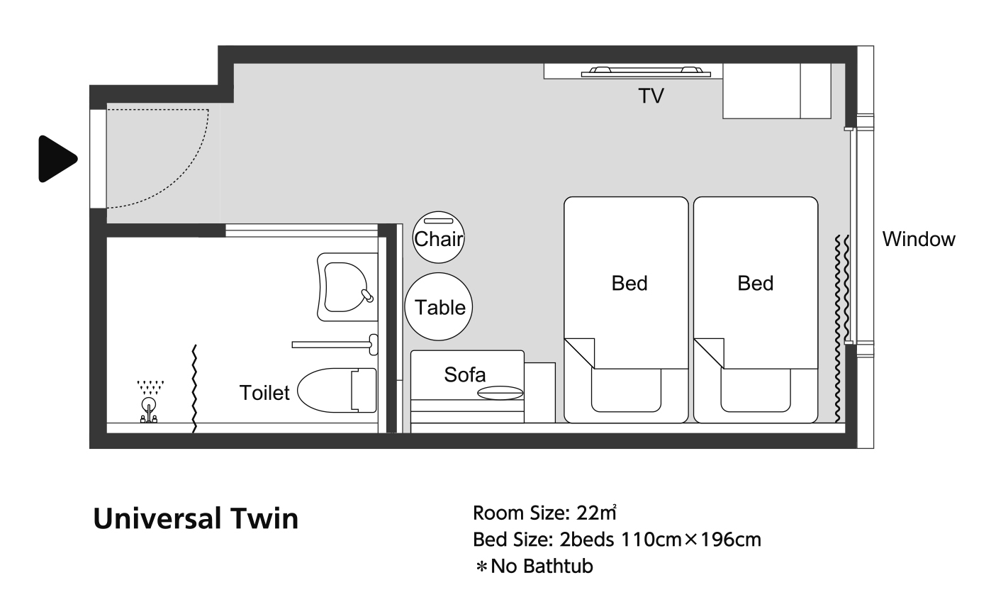 | 房間大小 | 22㎡ | 可容納人數 | 2位 |